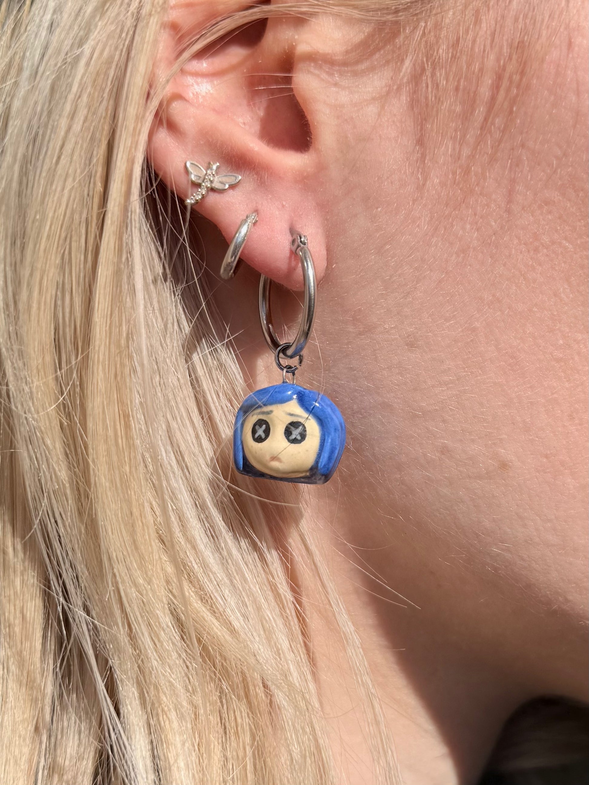Ogni orecchino è modellato e dipinto interamente a mano, con una lavorazione tridimensionale che dà vita a un piccolo volto scolpito, unico nel suo genere.