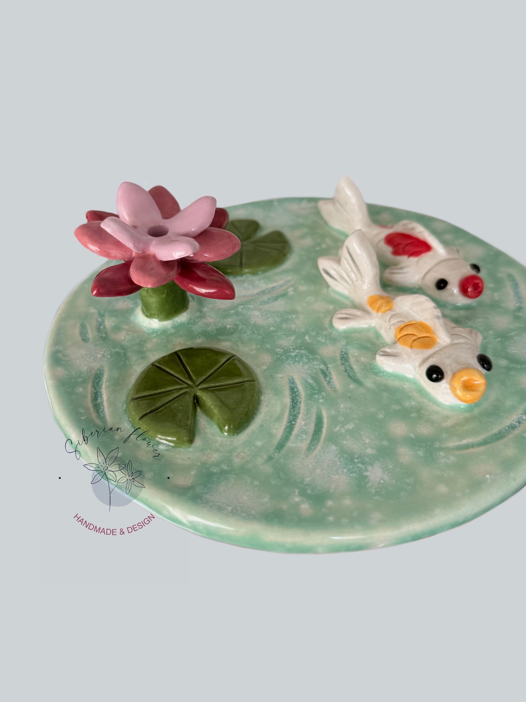 Piattino Portagioie Bruciaincenso con Carpe Koi
